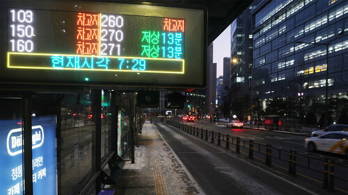 ▲ 서울 시내버스 노동조합이 무기한 전면 파업에 돌입한 13일 오전 서울 시내의 한 버스정류장에 도착 정보가 표시돼 있다.