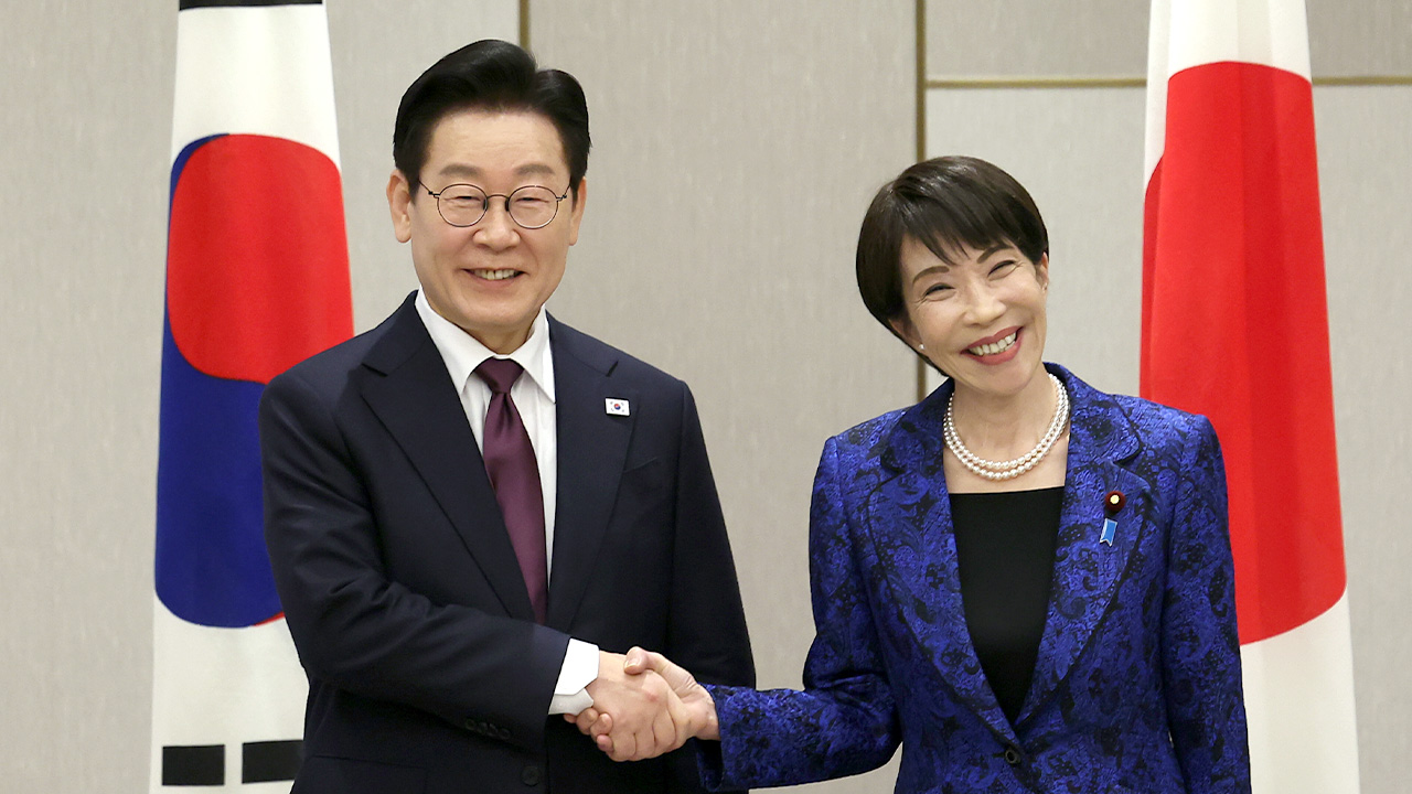 ▲ 이재명 대통령과 다카이치 사나에 일본 총리가 13일 일본 나라현 정상회담장에서 확대 회담에 앞서 악수하고 있다.