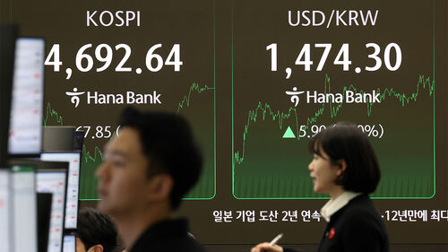오후 12시 6분쯤 1,474.95원까지 올라 지난해 12월 24일(1,484.90원) 이후 최고치를 기록했습니다.