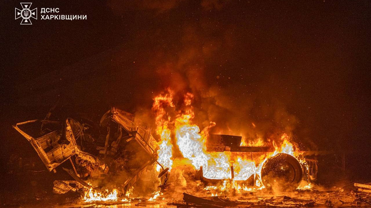 ▲ 13일 러시아 공습으로 하르키우에 발생한 화재