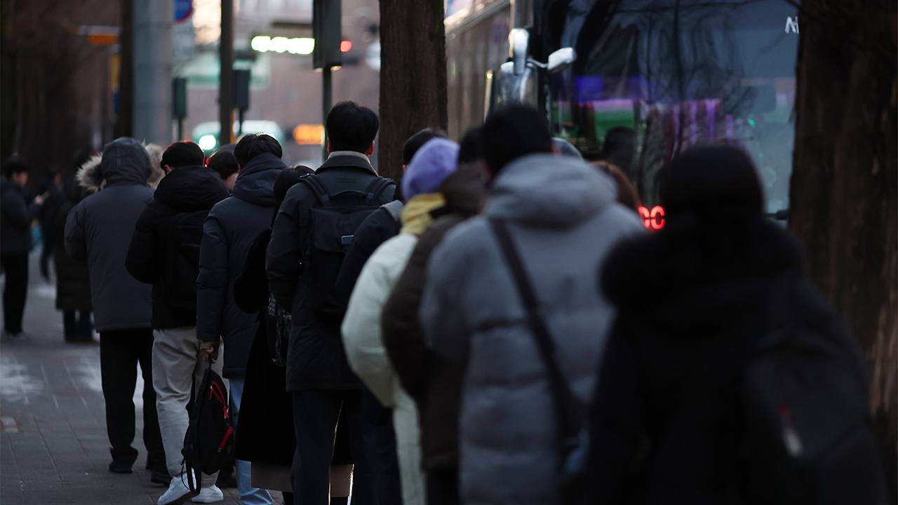 ▲ 서울 시내버스 파업 이틀째인 14일 성남 이매촌 한신 아파트 인근 버스 정류장에서 시민들이 서울로 향하는 광역버스를 기다리고 있다.