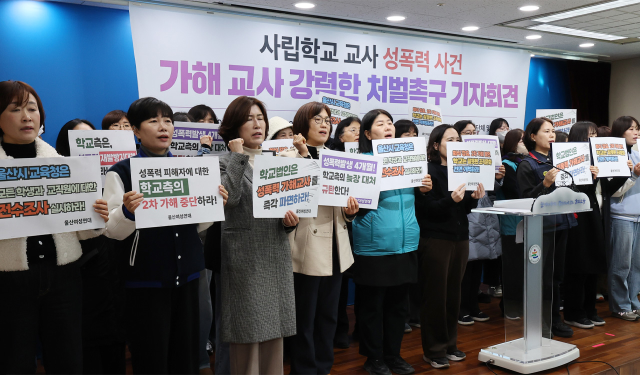 지난 12일 울산여성연대 등 울산지역 시민사회단체는 사립학교 기간제 교사 2명이 한 간부급 교사에게 각각 성폭력 피해를 봤다며 가해자에 대한 엄중한 처벌을 촉구했습니다.