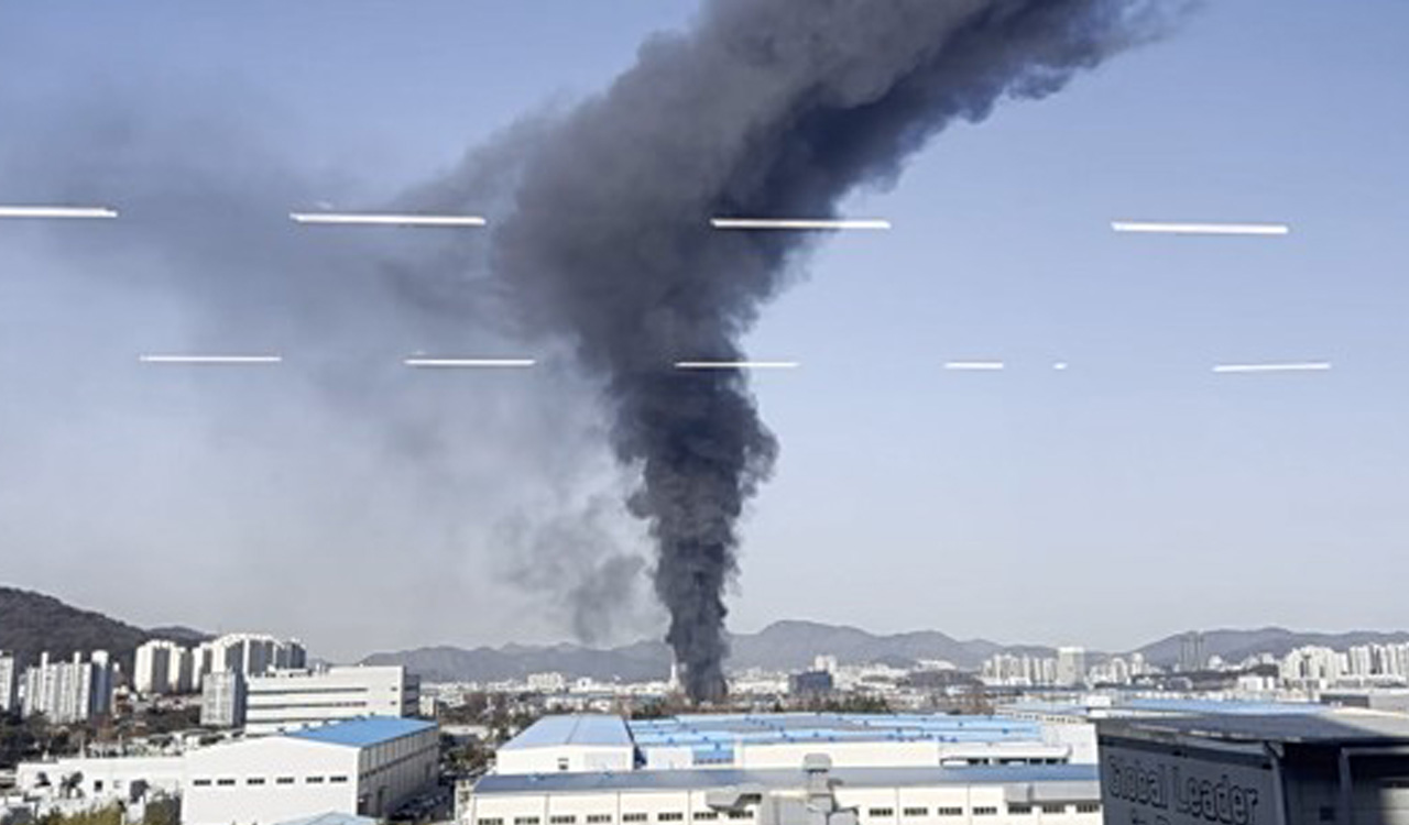 ▲ 창원국가산단 공장 화재로 발생한 연기