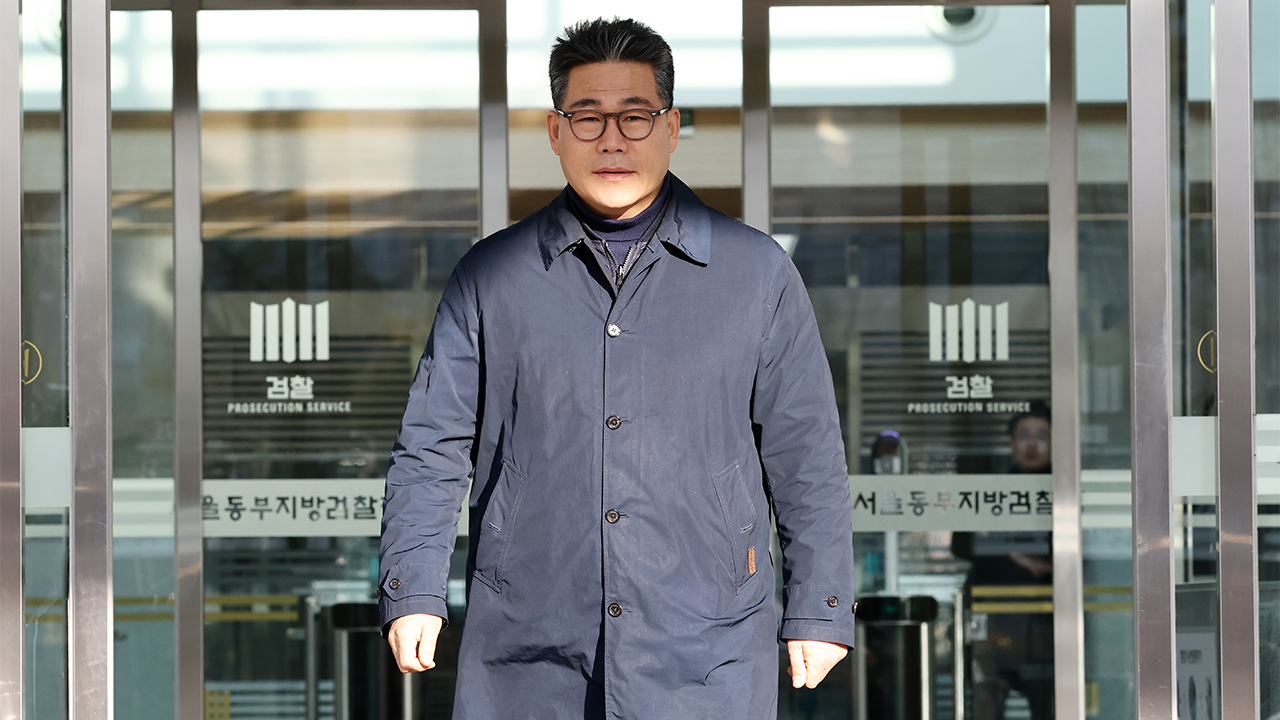 ▲ 서울동부지검에 파견돼 3개월간 '세관 마약수사 은폐 의혹'을 수사한 백해룡 경정이 파견 종료 소회를 밝히기 위해 14일 서울동부지검 앞으로 이동하고 있다