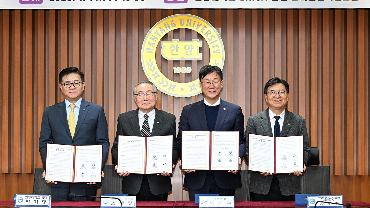 안산시는 14일 한양대 에리카캠퍼스에서 학교법인 한양학원, 한양대, 한양대의료원과 이런 내용을 담은 업무협약을 체결했습니다.