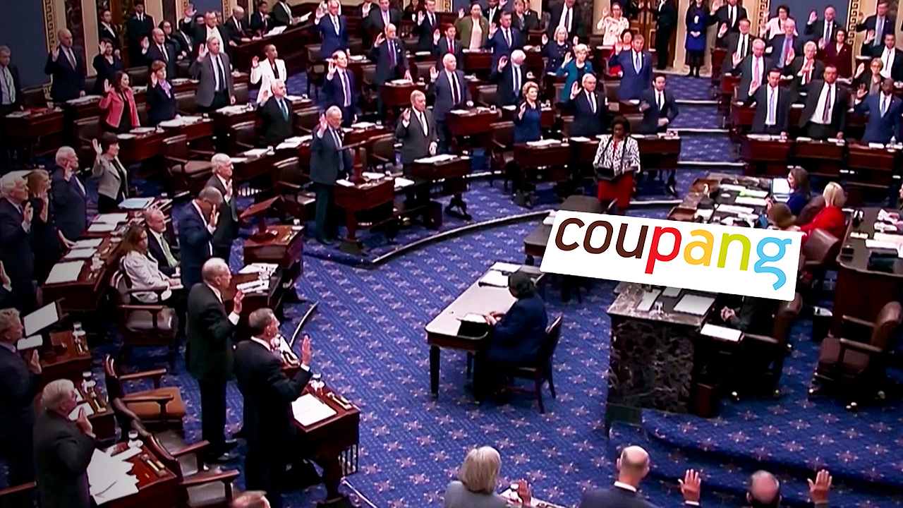 미국 연방 의회에서 한국이 쿠팡을 차별적으로 규제하고, 정치적 마냥 사냥을 하고 있다는 주장이 쏟아졌습니다. 미국 기업인 쿠팡의 논리를 그대로 대변한 겁니다. 그런데 공교롭게도 우리 통상본부장이 미국을 방문한 기간에 이런 비판이 나왔습니다.