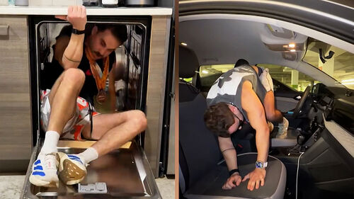 주방의 식기 세척기 안에서도 요리조리 움직이면서 뛰고, 좁디좁은 자동차 좌석에서도 뛰고, 심지어 미끄럼틀까지 러닝 트랙 삼아 열심히 뛰고 있습니다.