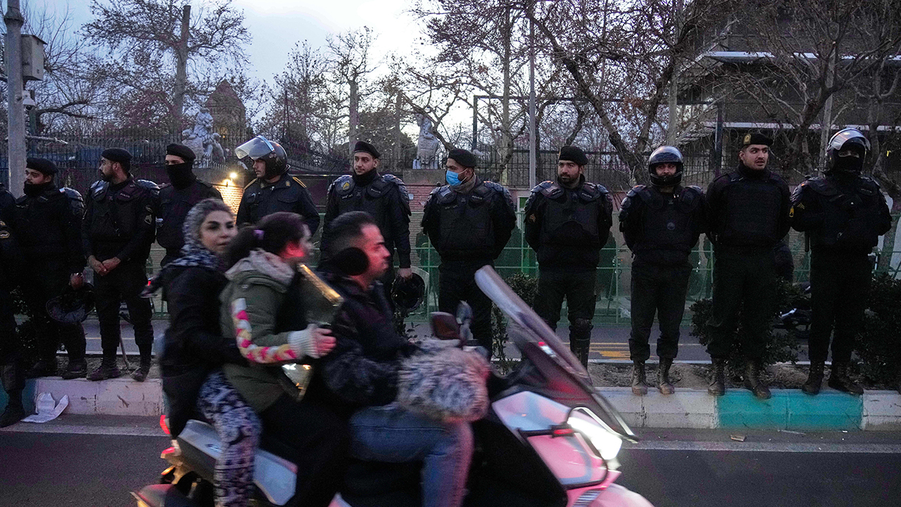▲ 14일(현지시간) 이란 수도 테헤란의 영국대사관 앞에 시위대 진압을 위해 경찰이 배치됐다.