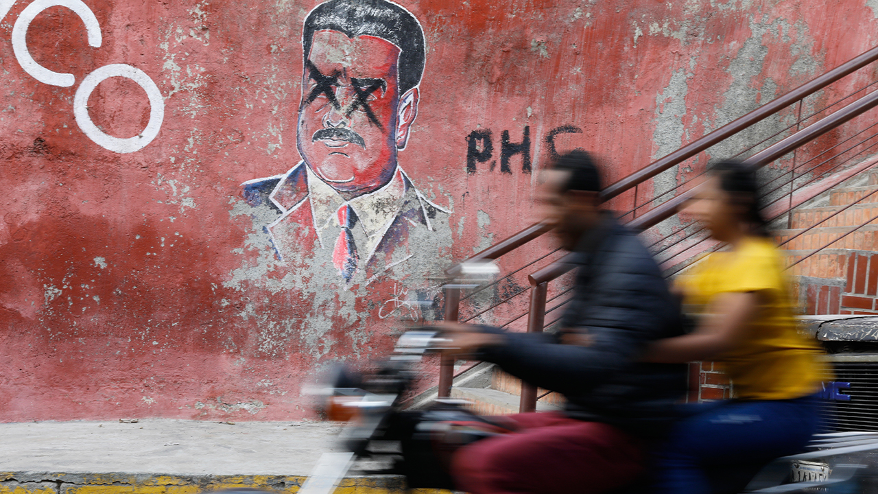 ▲ 마두로 대통령 낙서 앞을 한 오토바이가 지나가고 있다.