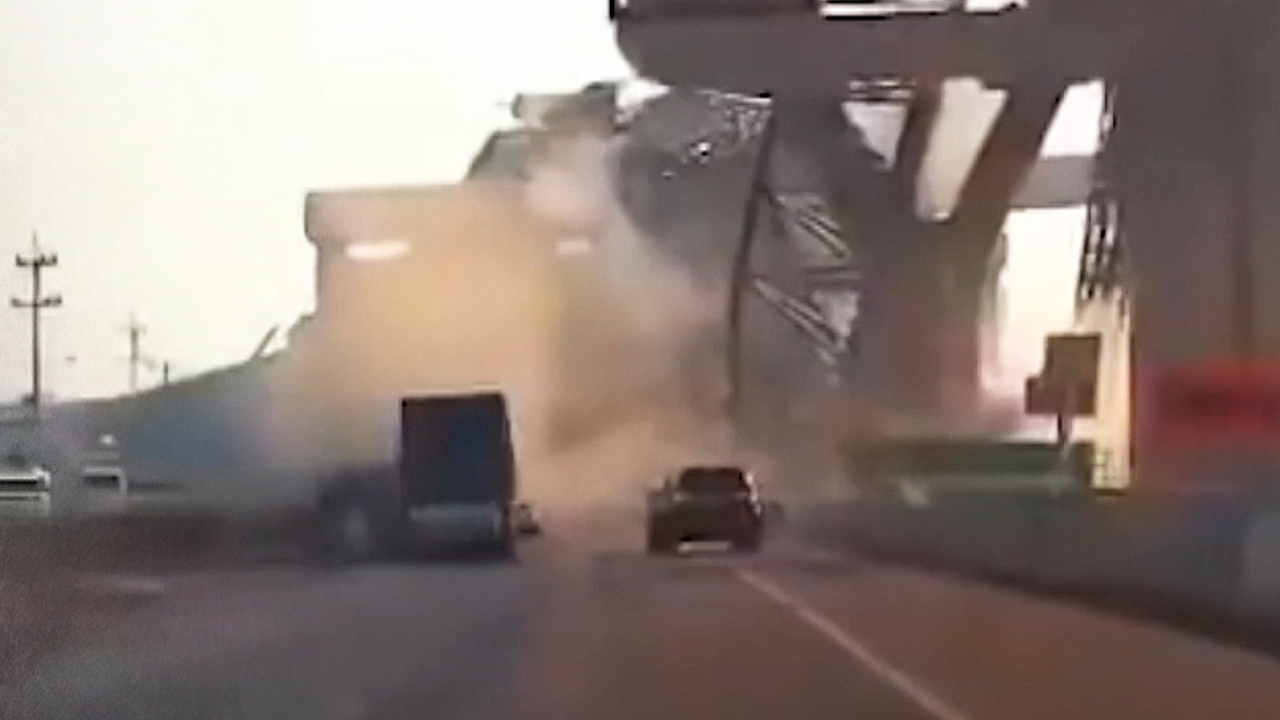 갑자기 도로 위 자동차들 위로 크레인과 콘크리트빔이 무너져 내립니다.
