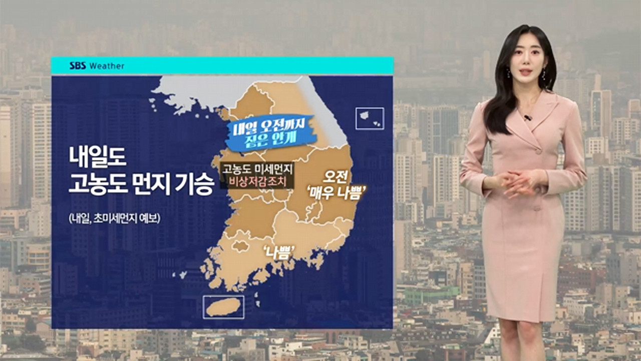 때문에 내일 오전까지 수도권과 충청, 전북과 광주, 대구·경북은 미세먼지 농도 매우 나쁨 수준 예상되고요, 충청권에서는 내일 미세먼지 비상저감조치도 시행이 되겠습니다.