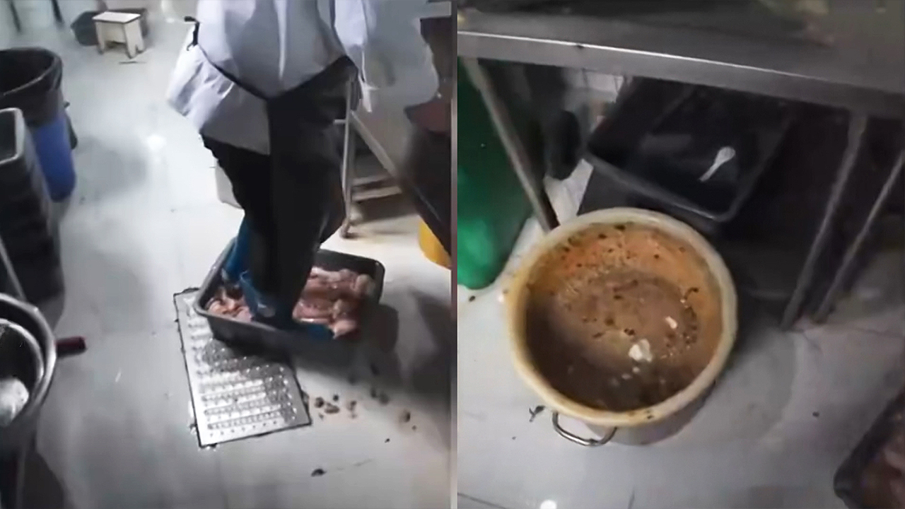 중국 난징의 한 음식점에서 직원이 식재료를 발로 밟고 곰팡이 식재료를 재사용하는 모습이 포착돼 논란을 사고 있습니다.