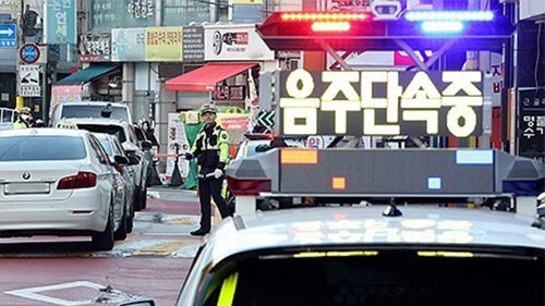 ▲ 대대적인 교통 단속이 실시된 지난해 11월 4일 서울 강남구 논현초등학교 인근 어린이보호구역에서 경찰이 음주운전 및 정지선 위반 차량을 단속하고 있다.
