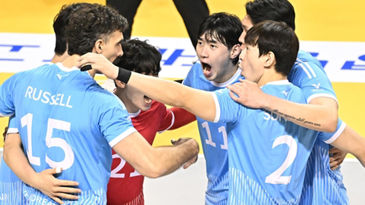대한항공은 4세트 23대 20에서 거센 추격으로 듀스를 만든 뒤 김규민의 결정적인 블로킹 2개로 극적인 승리를 만들어냈습니다.