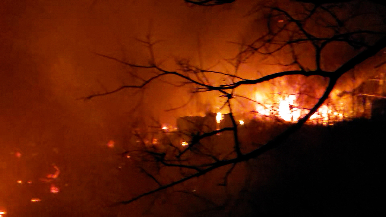 마을 곳곳이 시뻘건 불길에 휩싸인 채 검은 연기가 솟구칩니다.