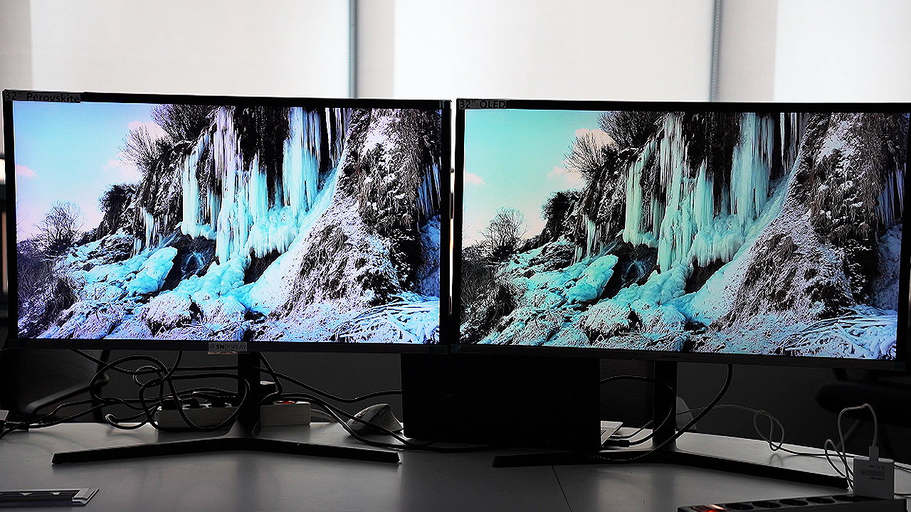 빛을 잘 흡수하고 내뿜는 물질인 페로브스카이트로 만든 디스플레이입니다.