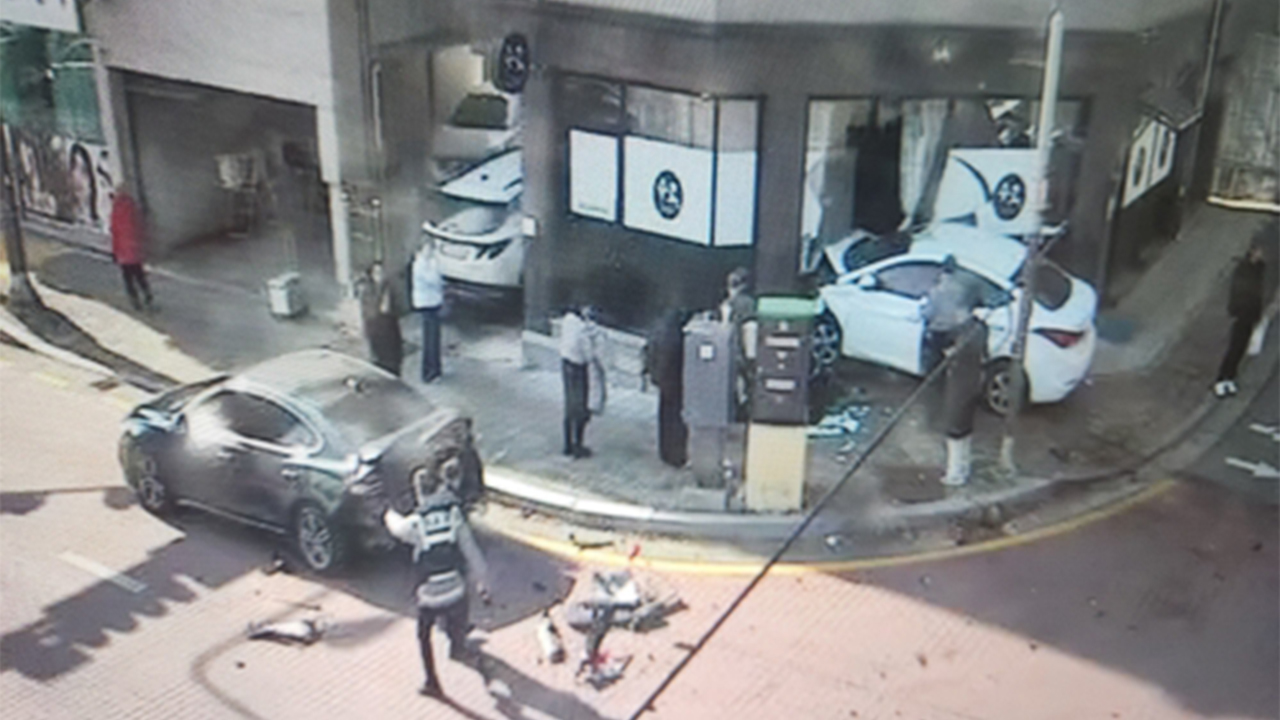 ▲ 17일 충남 공주에서 60대 운전 승용차가 다른 차 추돌 후 인도 돌진하는 사고가 발생했다.