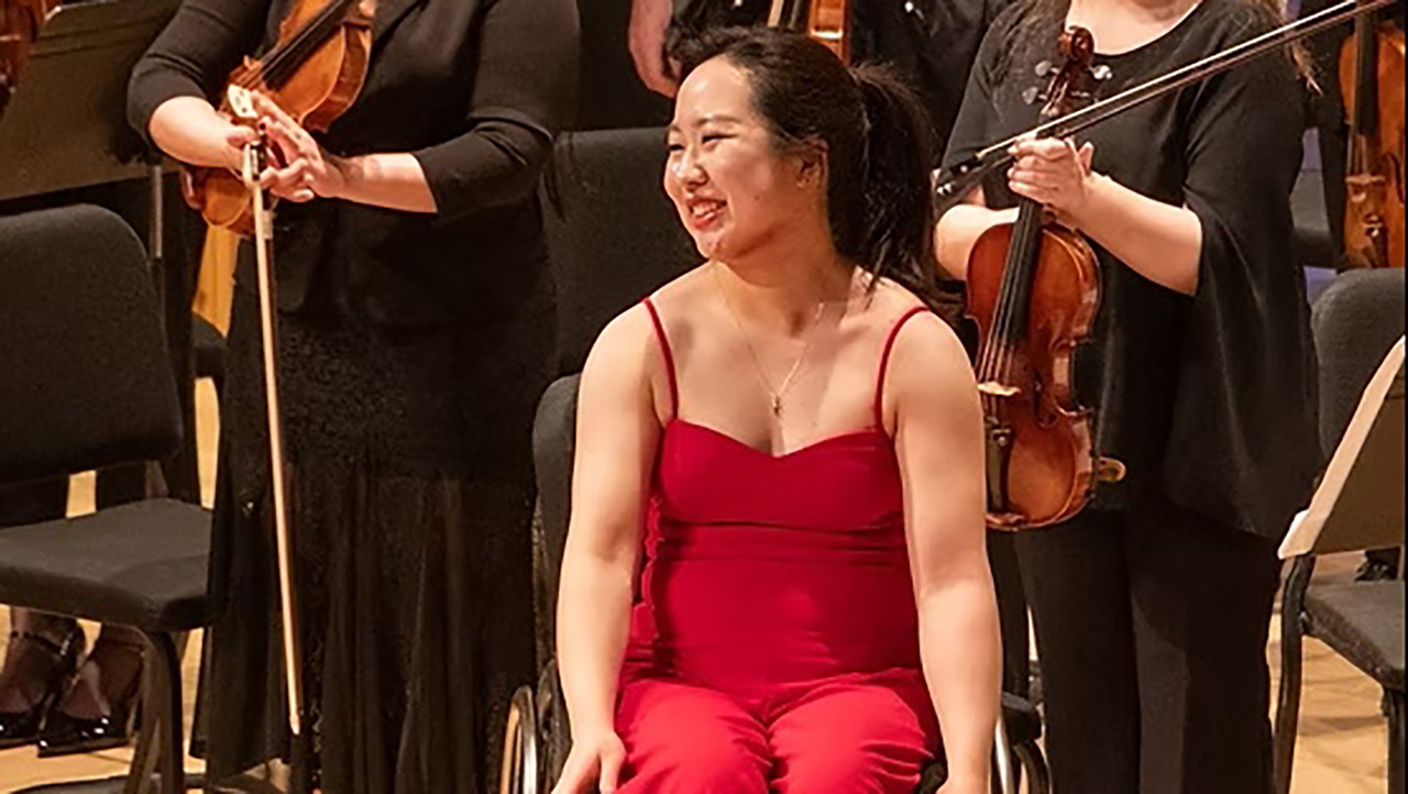 임 씨는 휠체어에 앉아 미국 린대학 필하모니아와 함께 시벨리우스의 '바이올린 협주곡 D단조'를 연주해 정상에 올랐습니다.