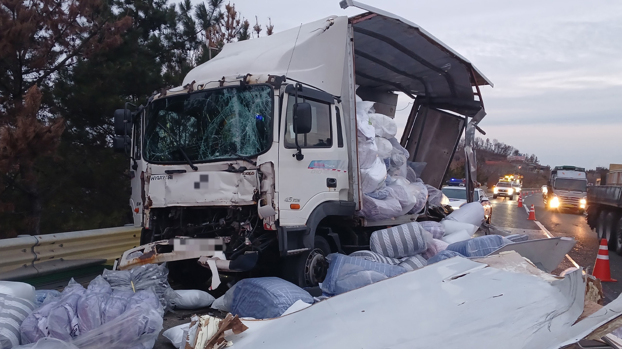 오늘(20일) 오전 6시 24분 경남 창녕군 중부내륙고속도로 창녕IC 인근에서 창원 방면으로 달리던 4.5t 화물차가 앞서가던 4.5t 화물차를 추돌한 데 이어 이들 차량을 뒤따르던 25t 화물차도 추돌하는 3중 추돌 사고가 발생했습니다.