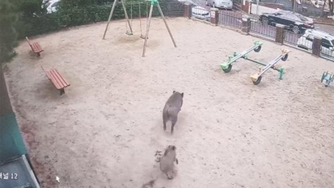 폐쇄회로(CC)TV 영상에서는 멧돼지 2마리가 인근 야산에서 도심으로 내려왔다가 다시 산으로 돌아가는 모습이 포착됐습니다.