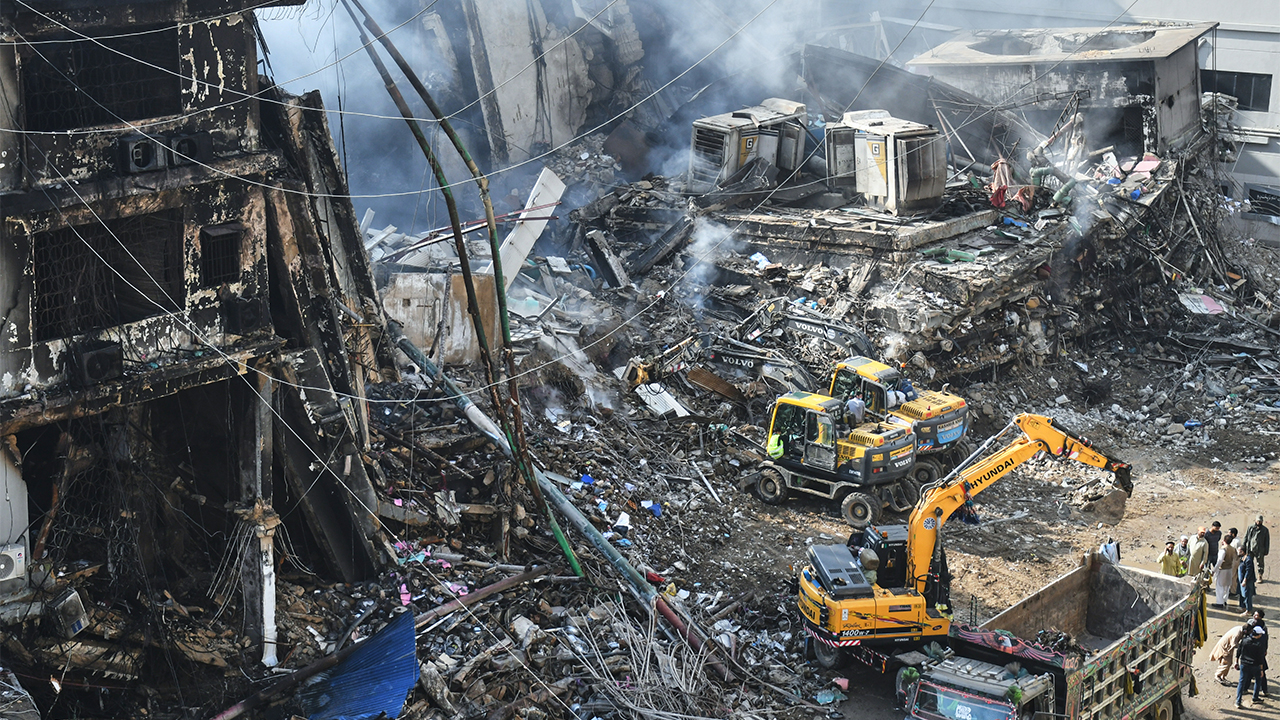 ▲ 파키스탄 쇼핑 상가 화재 잔해
