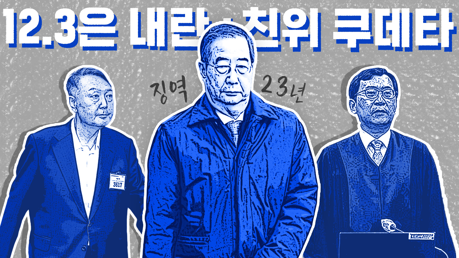 "12.3 비상계엄은 위로부터의 내란이자 친위 쿠데타" 윤석열 전 대통령이 주도한 12.3 비상계엄의 본체에 대한 사법부의 첫 판단이 나왔습니다. 서울중앙지법 형사합의33부(재판장 이진관 부장판사)는 내란중요임무종사 등 혐의로 기소된 한덕수 전 국무총리에 대한 선고 공판에서 12.3 비상계엄이 국헌문란과 폭동이라는 형법상 내란죄의 요건을 충족한다고 판결하고 한 전 총리에게 징역 23년을 선고했습니다. 특검 구형량 징역 15년보다 8년이나 높은 형량입니다.