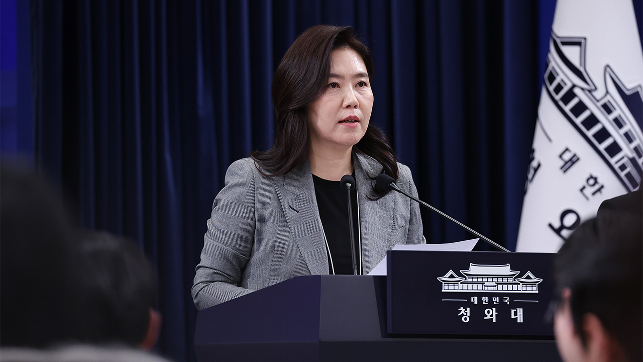 ▲ 강유정 대변인이 22일 청와대 춘추관에서 캄보디아 스캠 조직 피의자 송환 관련 브리핑을 하고 있다.