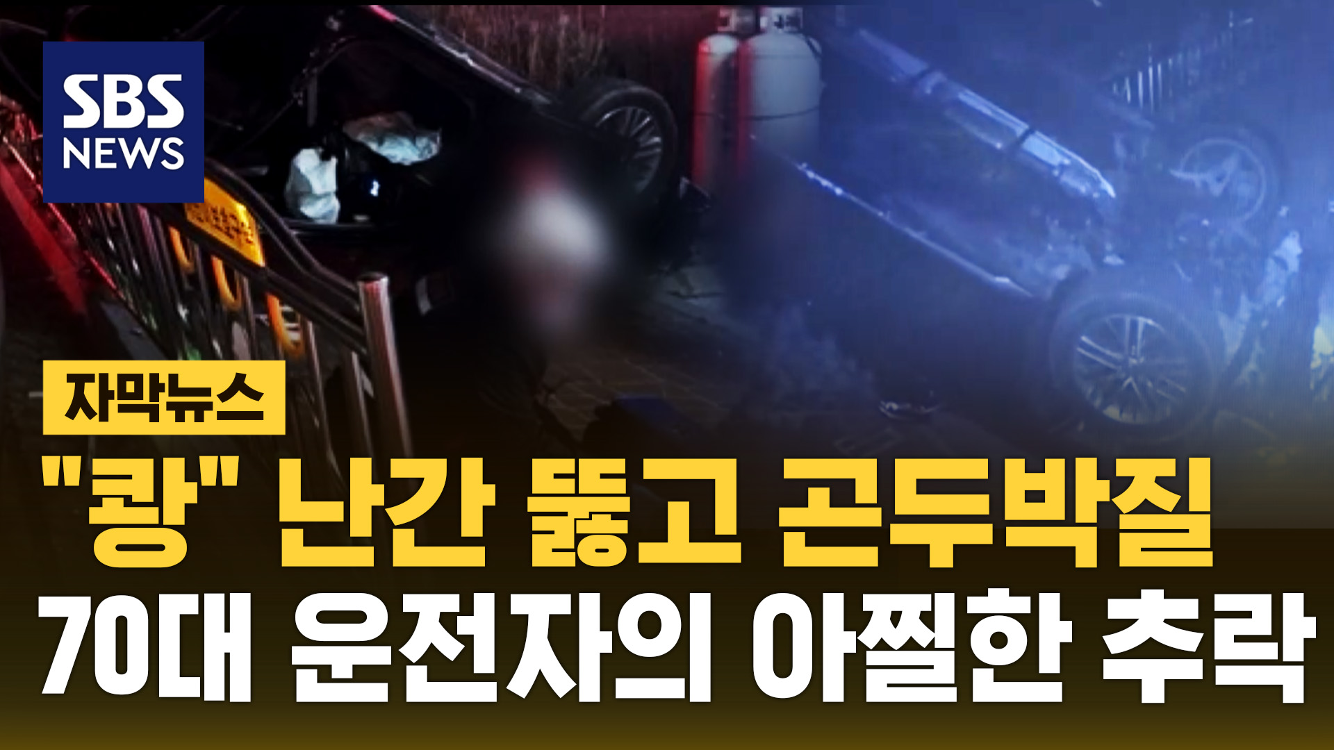 굉음의 정체는 차량이 추락하는 소리로, 난간을 뚫고 추락한 차량은 약 5m 아래 인도를 덮친 뒤 전복됐습니다.