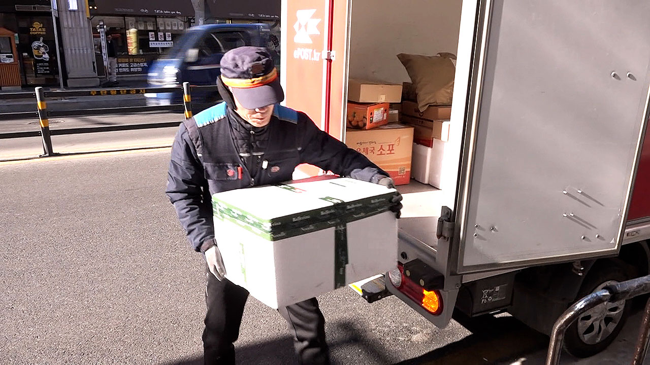 [김성훈/우체국 택배 배달원 : 손이 시린데 이 물건을 만지다 보니까 장갑을, 이 기계로 이렇게 작동을 하고 그래야 하니까. (장갑) 두꺼운 걸 못 껴요. 오늘 아침엔 진짜 손가락이 감각이 없고….]
