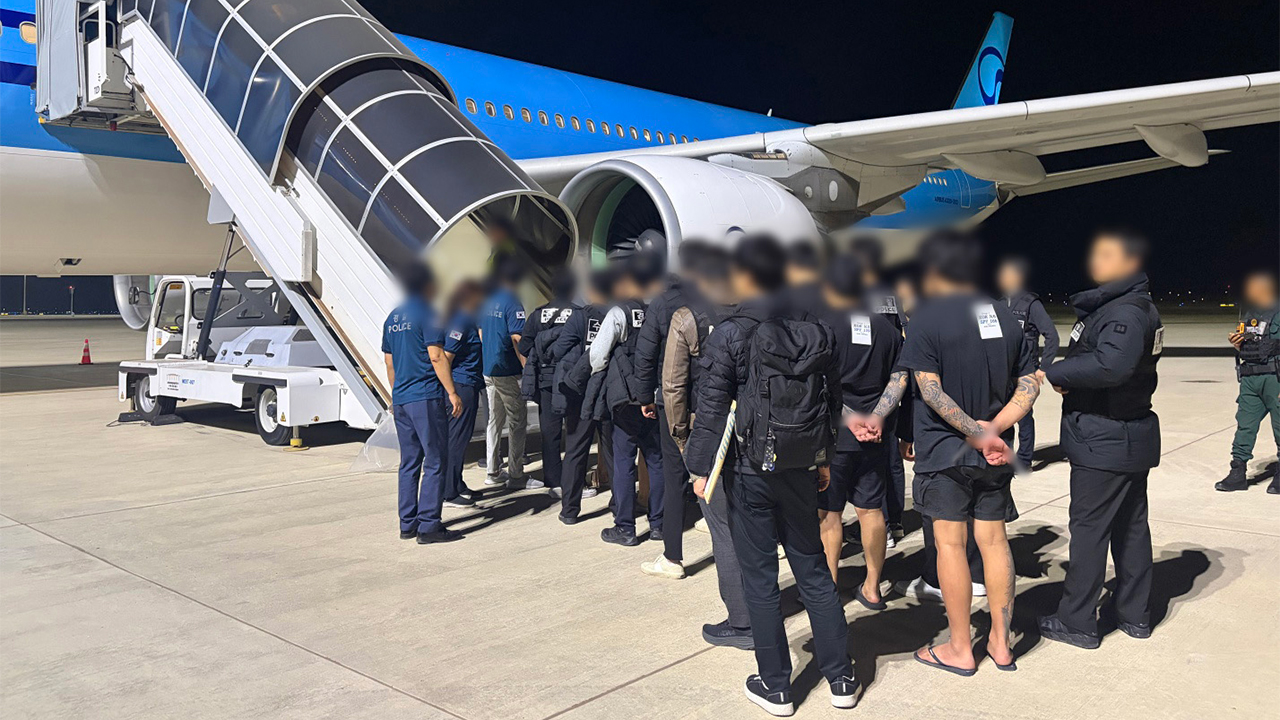 경찰청, 법무부, 국가정보원, 외교부 등으로 구성된 범정부 TF는 캄보디아에서 스캠, 인질강도 등에 가담한 한국인 범죄 조직원 73명을 강제 송환했습니다.