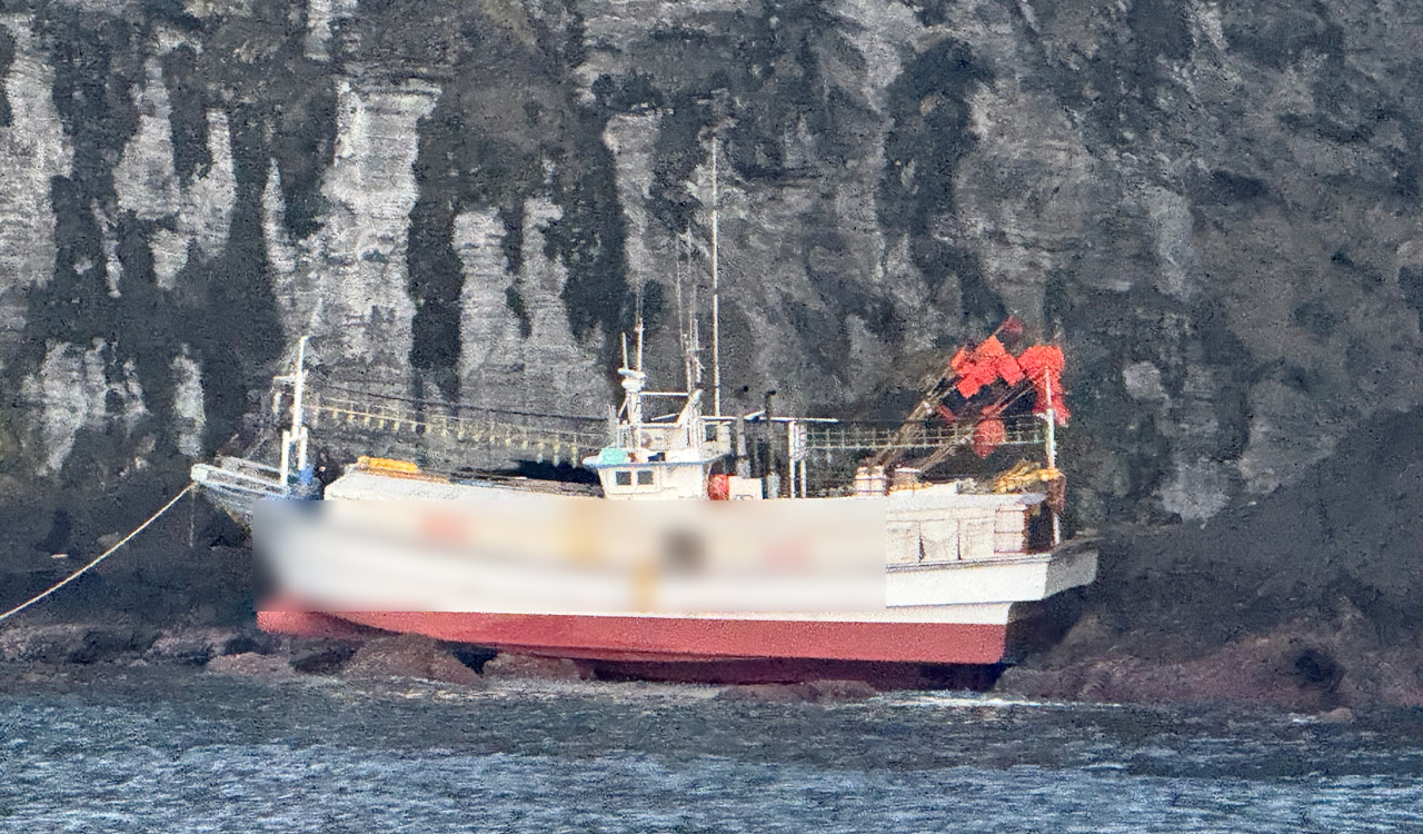 ▲ 성산일출봉 연안에 좌초된 어선