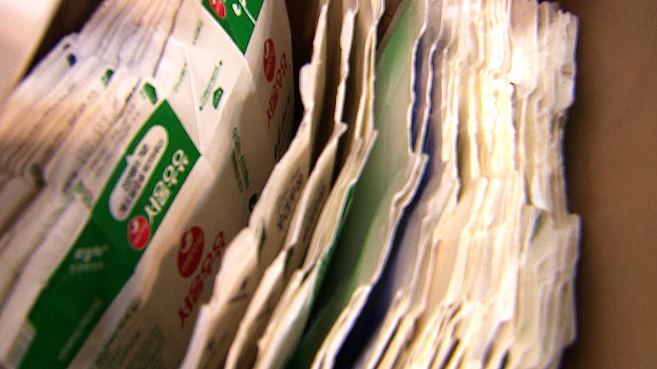 더 큰 문제는 멸균팩이다. 두유팩처럼 알루미늄 코팅이 된 멸균팩은 행정복지센터에서도 교환해 주지 않는다. 임 씨는 이것만 따로 모아 택배로 재활용 업체에 보낸다.