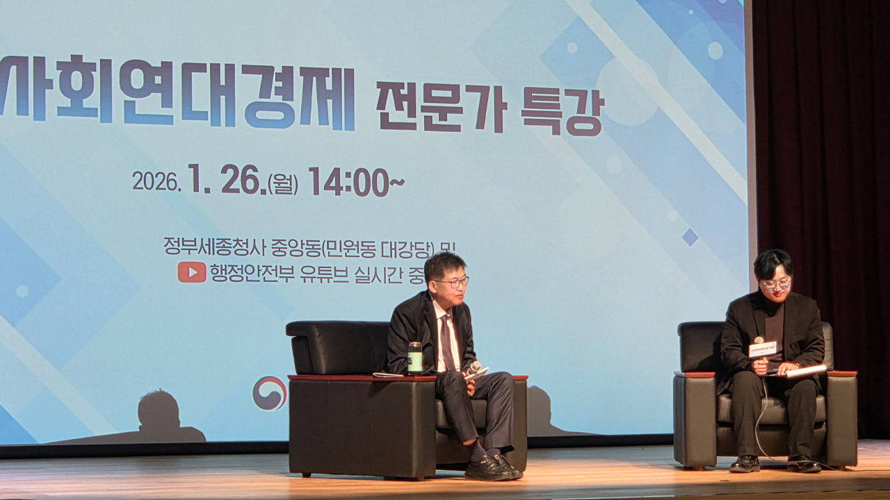 ▲ 행정안전부는 26일 정부세종청사에서 직원들을 대상으로 사회연대경제 전문가 특강을 열었다.