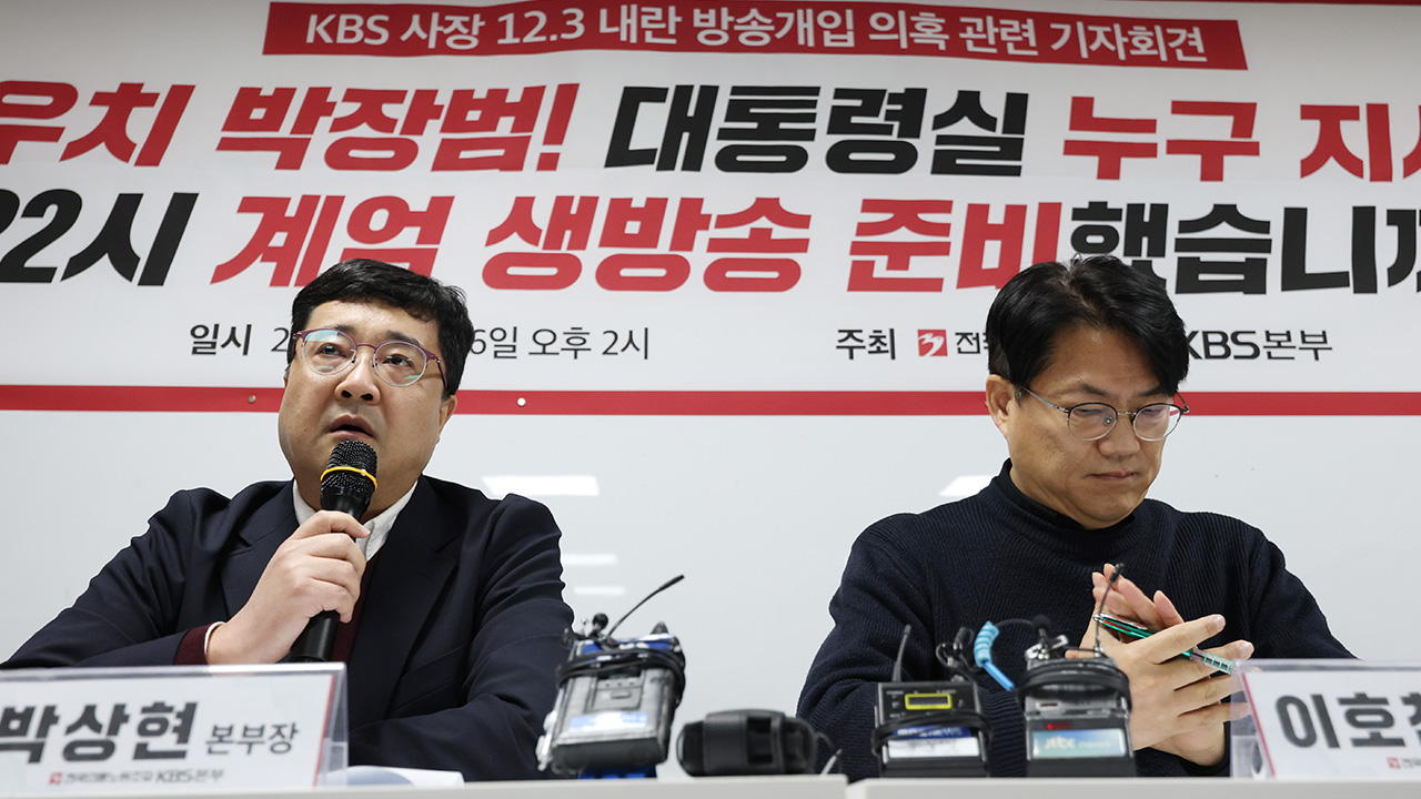 KBS 노조는 오늘(26일) 오후 기자회견을 열고 '믿을만한 제보'를 통해 이같이 알아냈다며 "박 사장은 '내란의 밤' 누구로부터 어떤 내용의 연락을 받았고, 최 국장에게 뭐라고 이야기했는지 빠짐없이 밝혀야 한다"고 주장했습니다.