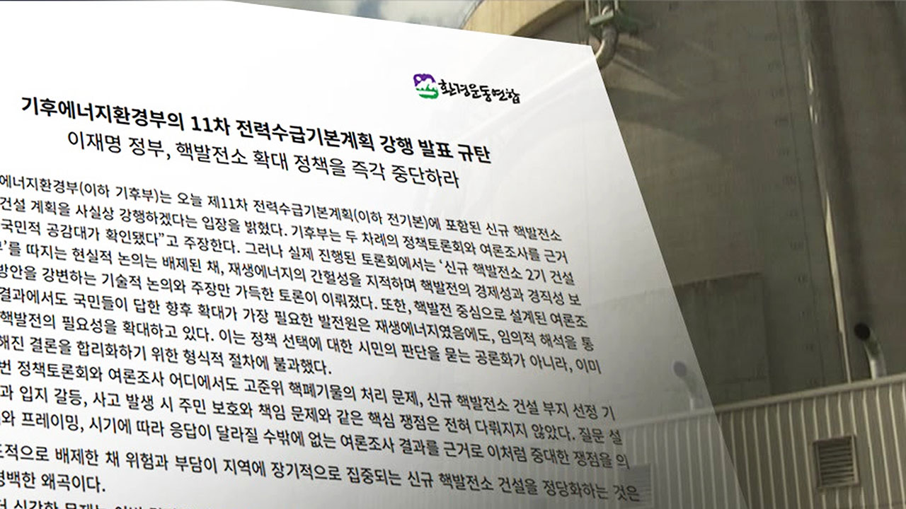 환경단체들은 내일(27일) 정부의 원전 건설 추진을 규탄하는 공동 기자회견을 예고했습니다.