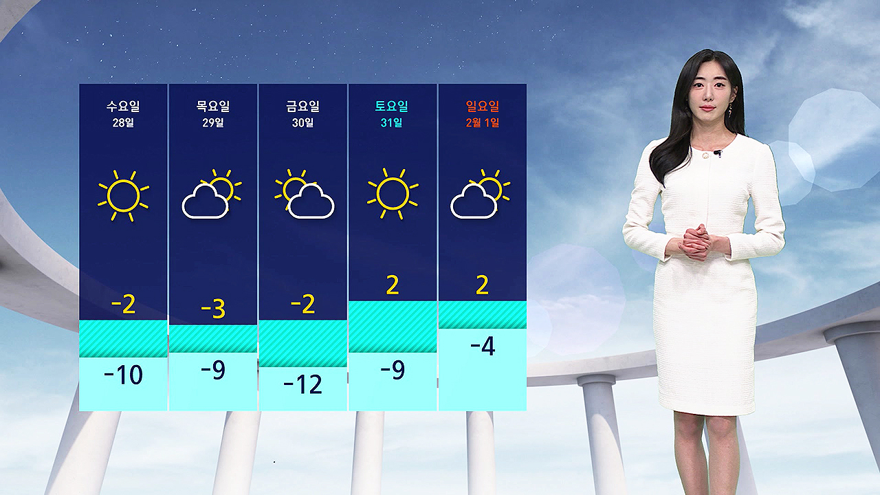 낮 기온은 서울 영하 2도 등 중부를 중심으로 영하권 추위가 이어지겠고, 남부 지방은 어제보다는 조금 더 오르겠습니다.