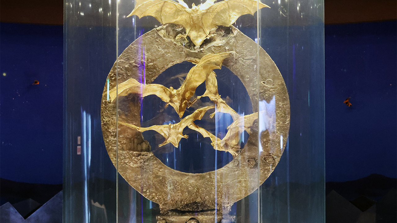 황금박쥐상은 가로 1.5m, 높이 2.1m 규모 은으로 된 원형 조형물에 오로지 순금으로 만든 6마리의 황금박쥐가 날개를 펼치고 날아오르는 모습을 형상화한 조형물입니다.