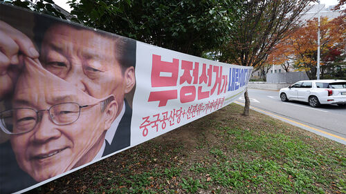 경찰이 혐중 정서와 부정선거 의혹을 조장하는 현수막 달기 운동을 벌여온 단체 대표를 대상으로 강제수사에 착수했습니다.