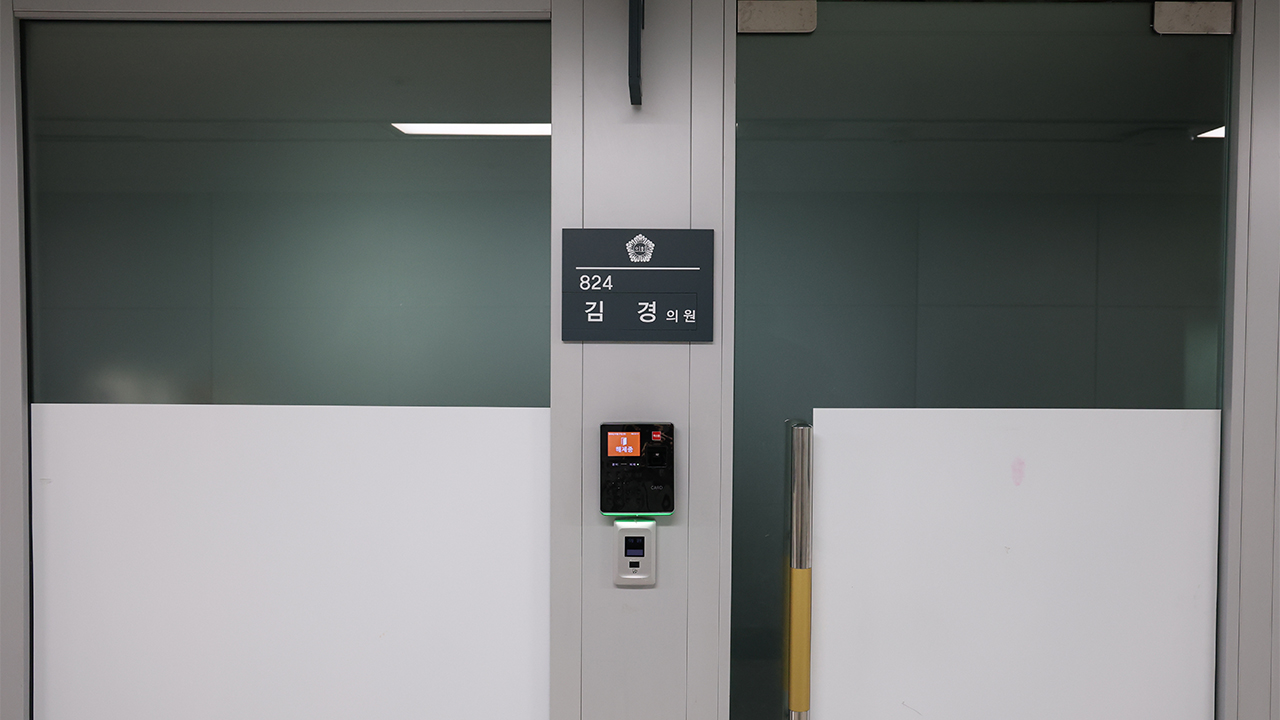 ▲ 27일 중구 서울시의회 별관에 위치한 김경 서울시의원 연구실에 불이 꺼져 있다.