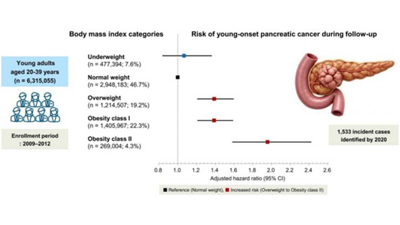 ▲ 2030 젊은 췌장암 환자의 주요 발병 원인으로 비만이 꼽힌 가운데, 과체중 단계에서부터 발생 위험이 급격히 증가하는 것으로 나타났다.