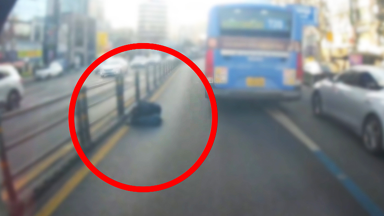 한 남성이 버스 전용 차로에 누워 쿨쿨 잠자는 장면이 포착돼 공분을 사고 있습니다.