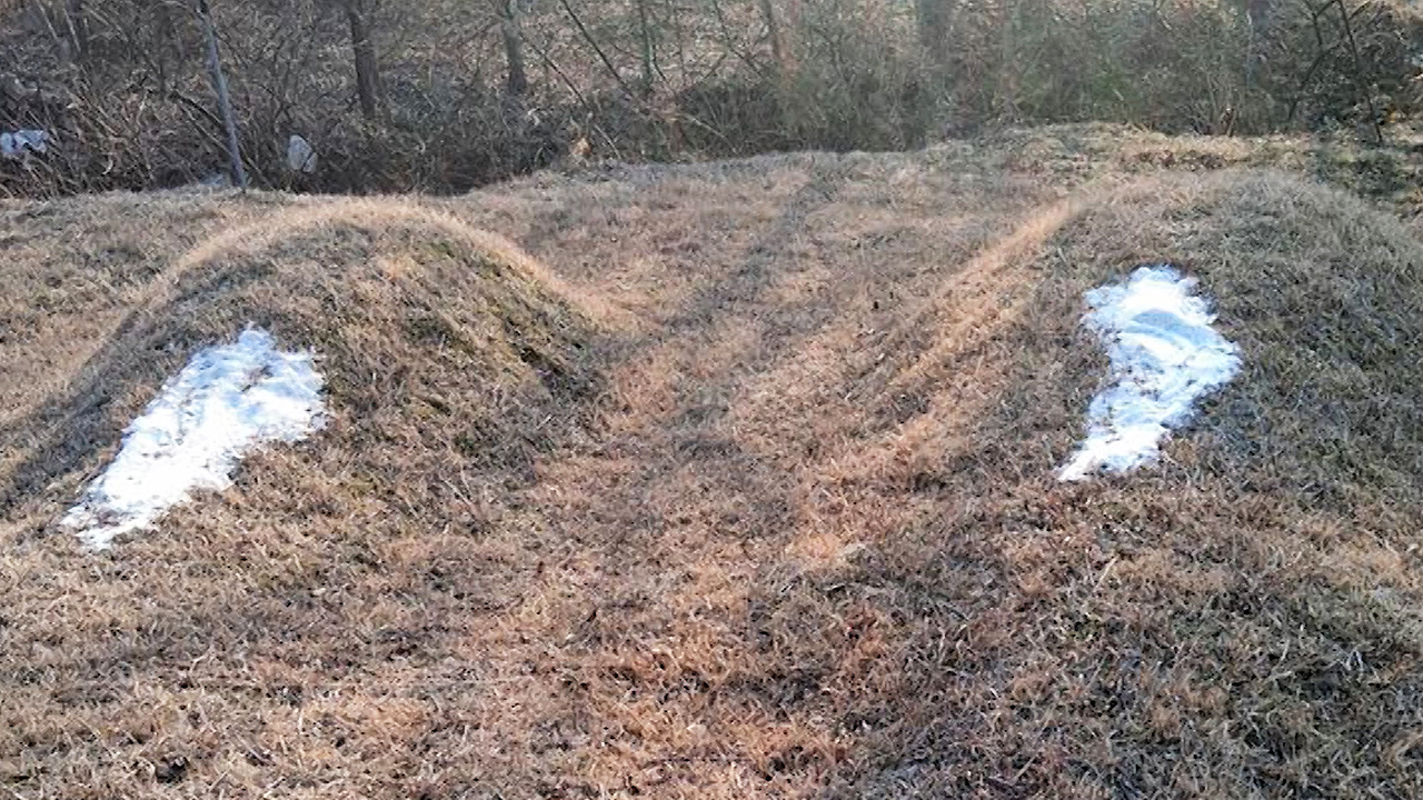 보시면요. 묘지 위에 흰색이 뭔가 쌓여 있는 게 보이죠. 이거 눈인가 싶습니다.