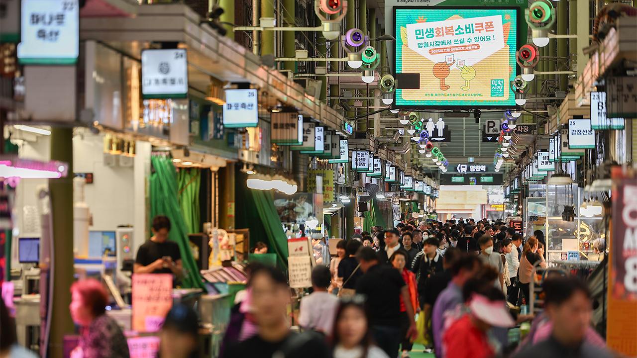 ▲ 서울 시내 한 시장에 소비쿠폰 관련 안내문이 표시되고 있다.