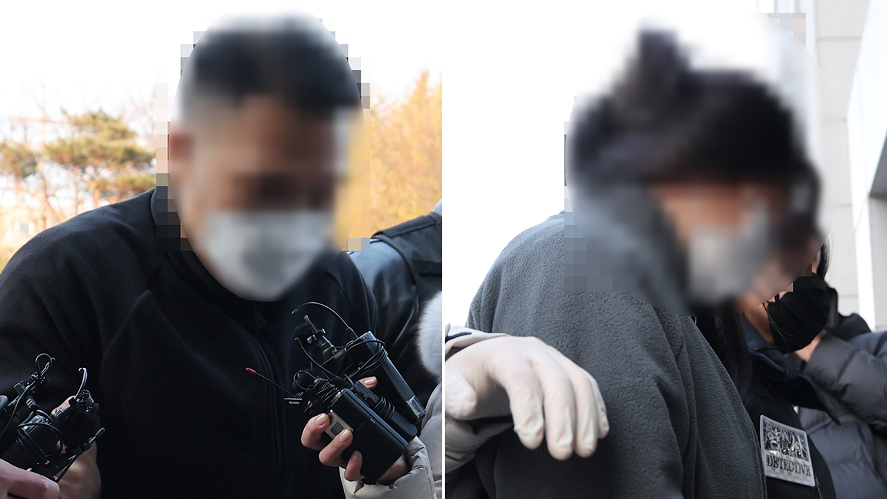 ▲ 캄보디아에 거점을 두고 120억 원대 '로맨스 스캠' 사기를 벌인 부부가 지난 23일 국내로 송환된 데 이어 조사를 받기 위해 울산경찰청으로 압송되고 있다.
