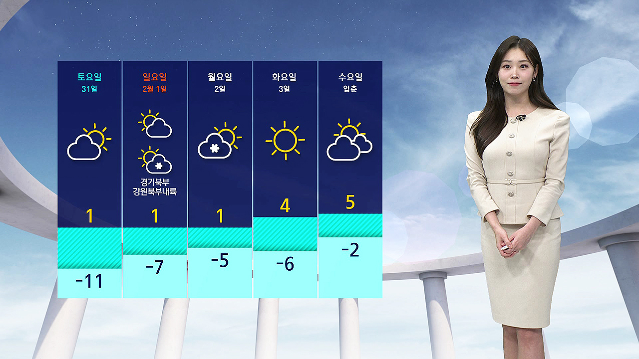 일요일에는 경기 북부와 강원 북부 내륙 지역에 눈이 내리겠고요.