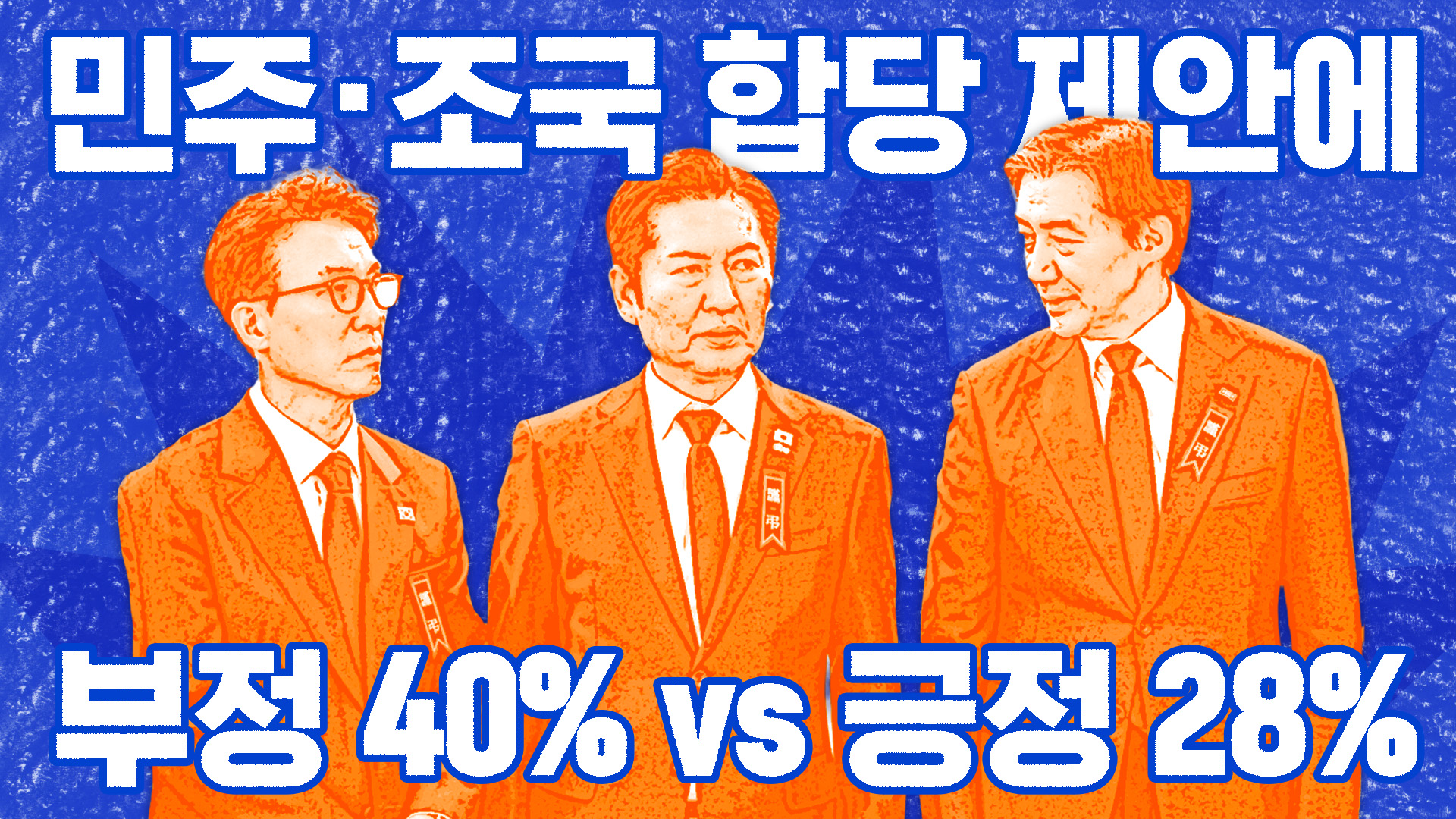 오늘 갤럽 조사에서 가장 눈에 띄는 부분은 더불어민주당과 조국혁신당 합당 추진에 대한 조사 결과였습니다. "좋지 않게 본다"라는 부정적 평가가 40%, "좋게 본다" 긍정적 평가 28%였습니다. 부정 평가가 12%p 높게 나타났는데, 흥미로운 점은 정치성향이 중도라고 답한 응답자(318명, 전체 응답자는 1,001명입니다)의 경우 '부정 40% vs 긍정 28%'로 전체 수치와 정확히 일치했다는 점입니다.