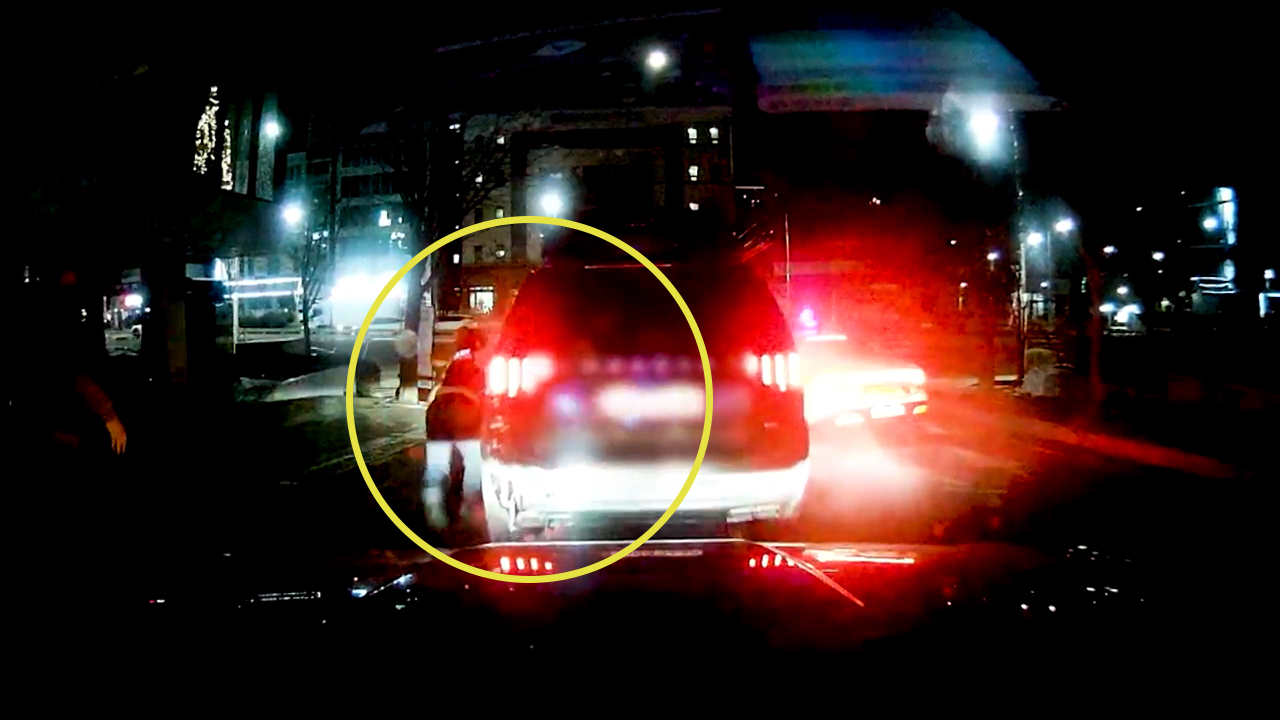이른 새벽, 경찰차가 나타나자 사거리 한가운데 서 있던 SUV 한 대가 갑자기 속도를 내며 도망칩니다.