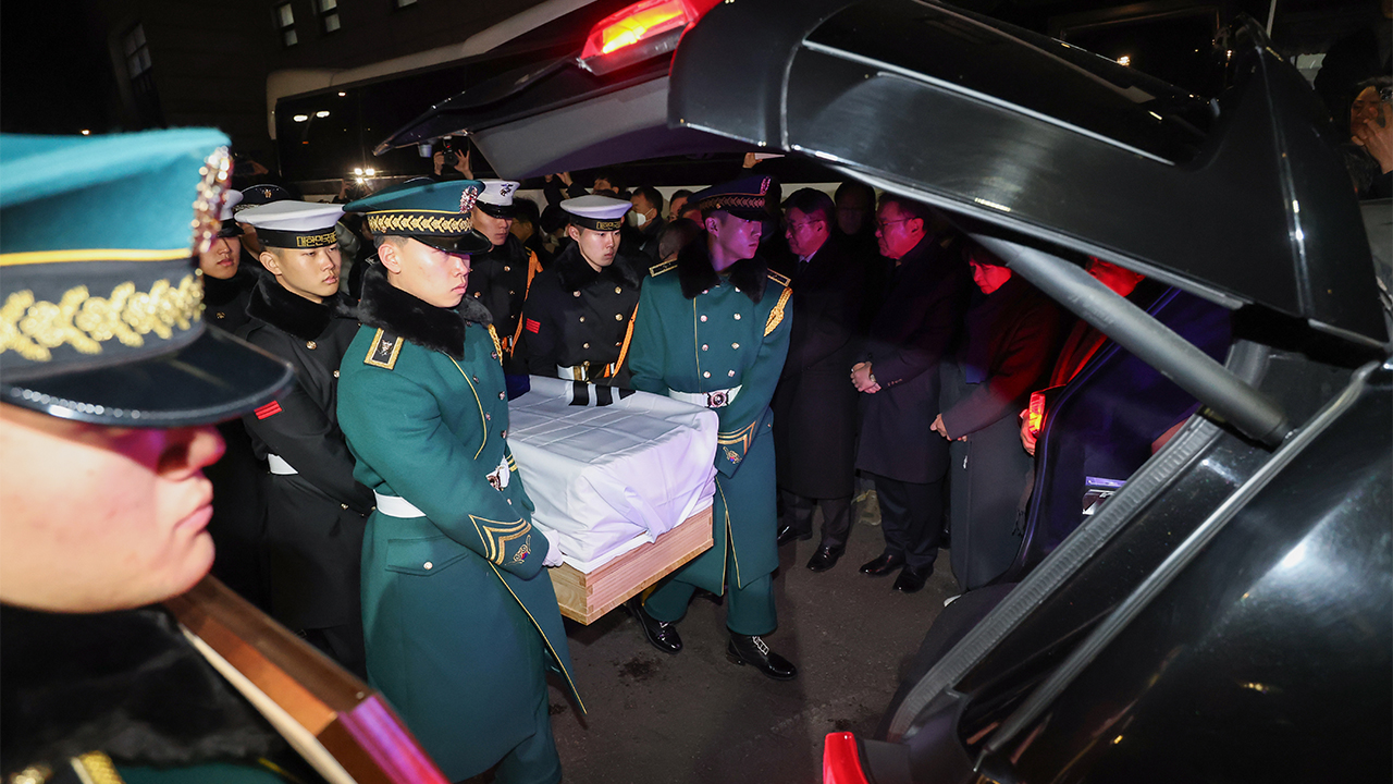 발인이 시작되자 군 의장대는 고인의 영정과 이재명 대통령이 추서한 국민훈장 무궁화장을 차례로 들고 장례식장을 나섰습니다.