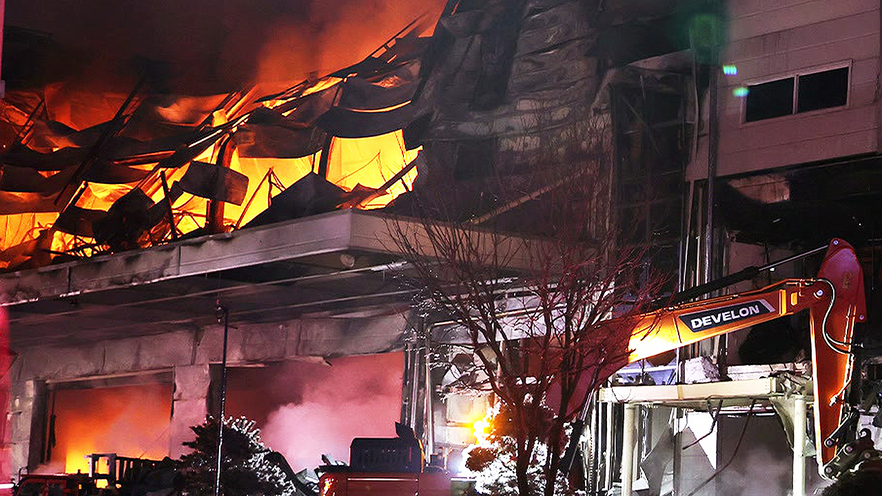 검은 연기를 뿜어내는 시뻘건 불길이 공장 곳곳을 집어삼켰고, 건물 내부 벽면은 무너져 내릴 듯 주저앉았습니다.