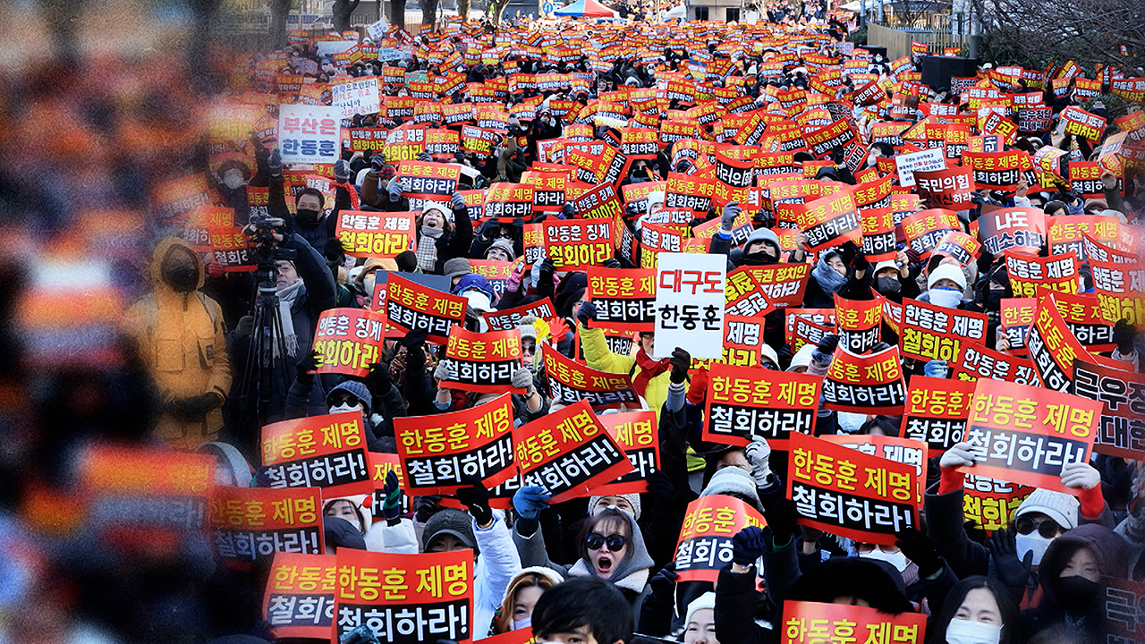 장동혁 대표를 비롯한 국민의힘 지도부가 그제(29일), 한동훈 전 대표 제명을 확정하자 한 전 대표 지지자들이 규탄 집회를 연 겁니다.